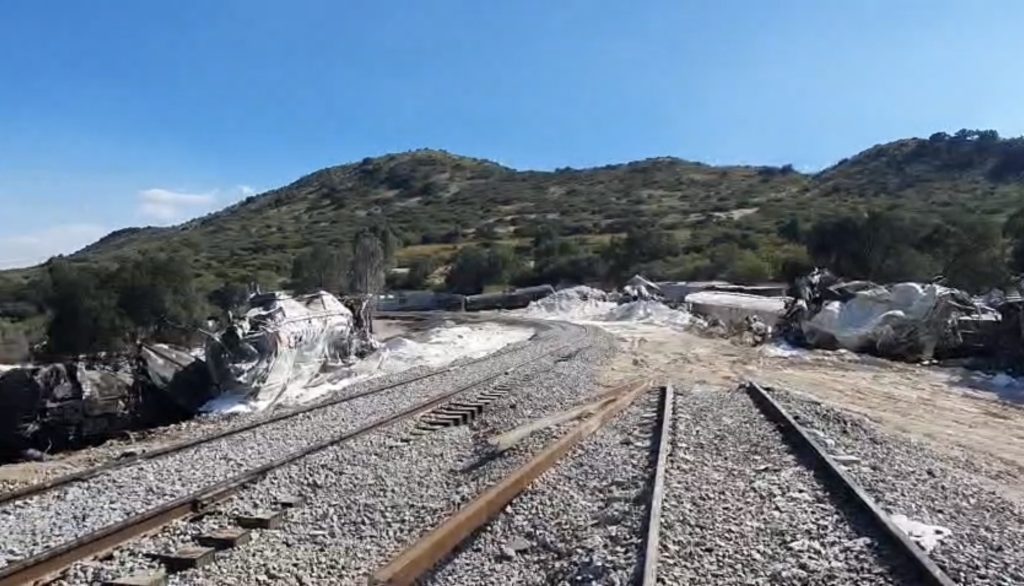 Entre los restos del convoy aún se observan estructuras metálicas retorcidas y algunos vagones calcinados que transportaban automóviles nuevos. Otros permanecen volcados a los costados de la vía, mientras los últimos carros del tren —que se dirigía a la Ciudad de México procedente de Coahuila— continúan detenidos sobre los rieles.